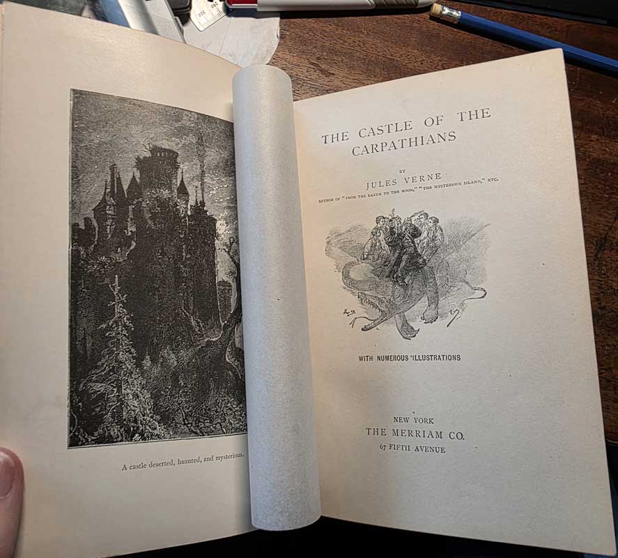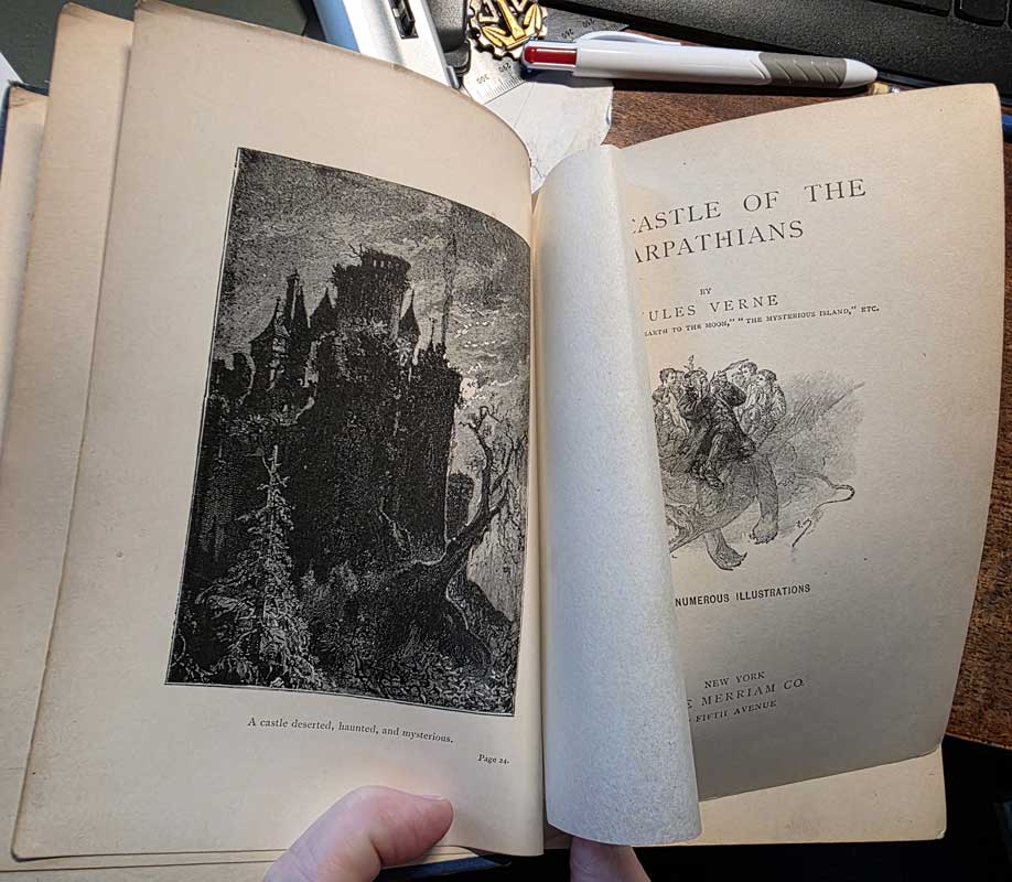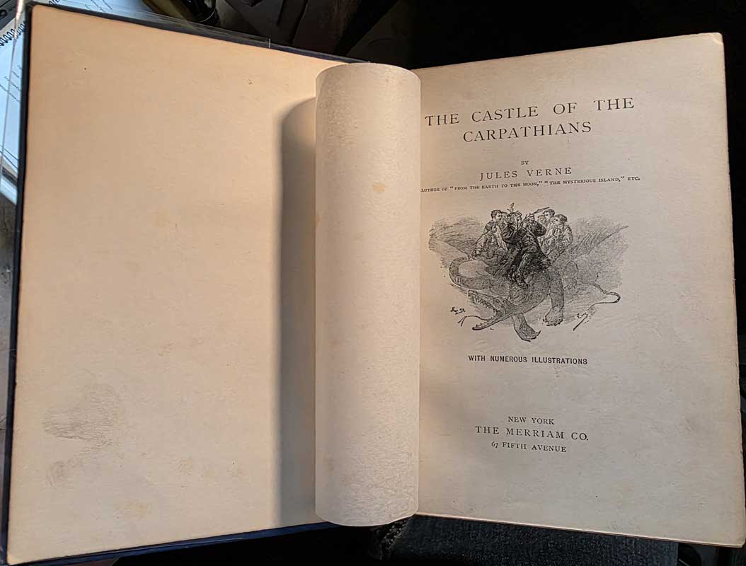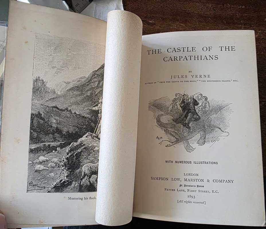 The Castle of the Carpathians [62] 1900 US edition, Saalfield [58] 1893 first English edition Blue, Sampson Low [59] 1894 first US edition Blue, Merriam [60] 1894 first US edition Brown, Merriam [63] 1905 UK new and cheaper edition Red, Sampson Low [61] c.1890s UK new and cheaper edition Green, Sampson Low
