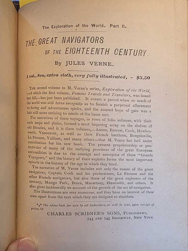 The Explorations of the World: The Great Navigators of the XVIIIth Century [93] 1880 first UK edition, Sampson Low [94] 1880 first US edition Blue, Scribner's [95] 1880 first US edition Brown, Scribner's [?96?] 1881 US edition, Scribner's