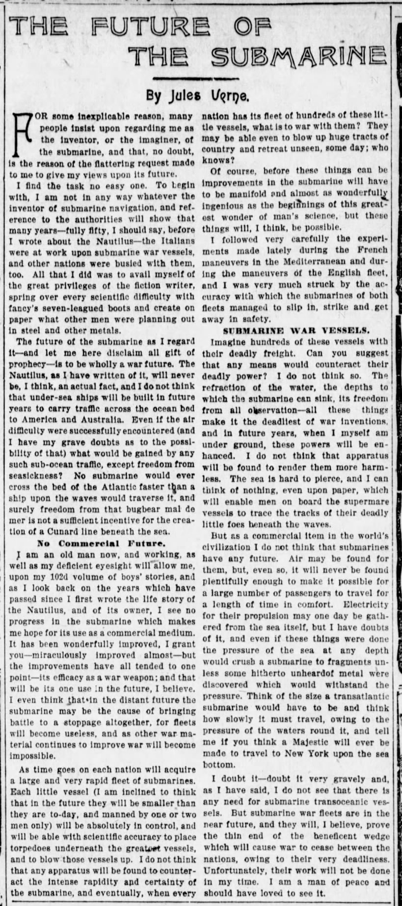 "Jules Verne thinks it will be used only for War - May Play great part in bringing Universal Peace"