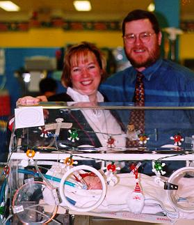 Sullivan's incubator, decorated with lights and ornaments: