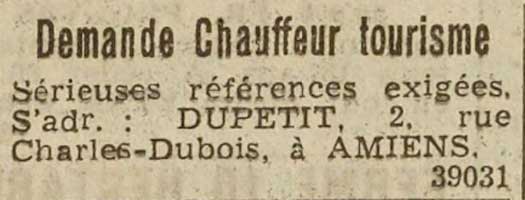 S'adresser: 2, rue Charles-Dubois, Amiens