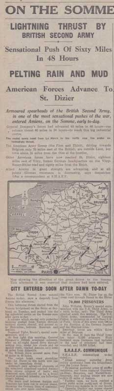 The lightening thrust started from the Vernon bridgehead on the Seine at daybreak on Tuesday, and pushed into the big industrial centre on the Somme