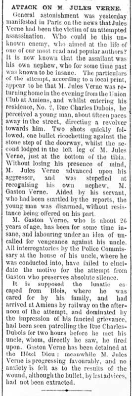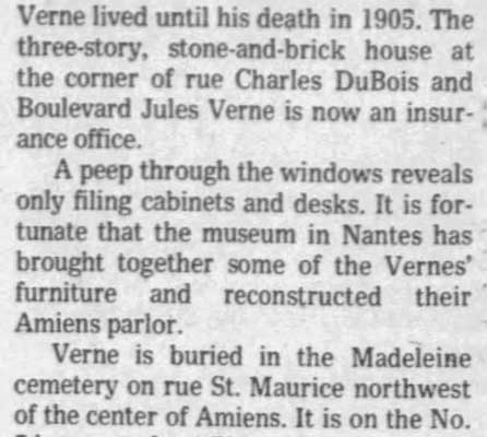 - 1886 (March 9) - At 5 o'clock in the evening, Jules is shot , at this house, by his nephew, M Gaston Verne (26)
