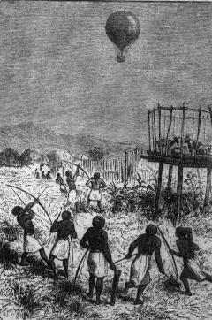 At noon, the doctor, upon consulting his map, calculated that they were passing over the Uzaramo1 country. The soil was thickly studded with cocoa-nut, papaw, and cotton-wood trees, above which the balloon seemed to disport itself like a bird. Joe found this splendid vegetation a matter of course, seeing that they were in Africa. Kennedy descried some hares and quails that asked nothing better than to get a good shot from his fowling-piece, but it would have been powder wasted, since there was no time to pick up the game.