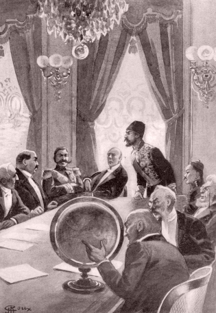 Jeżeli to wystarczało dotychczas do uspokojenia burzliwego zgromadzenia, to trudno było orzec, czy przyszłość nie zgotuje jakiej niespodzianki. Sądząc po podnieceniu ogólnem, można było się tego spodziewać. W istocie podniecenie stawało się coraz gwałtowniejsze, coraz mniej liczono się ze słowami, tak że można było przewidywać interwencję siły zbrojnej, co ubliżyłoby wielce powadze państw suwerennych, mających swych przedstawicieli na konferencji.