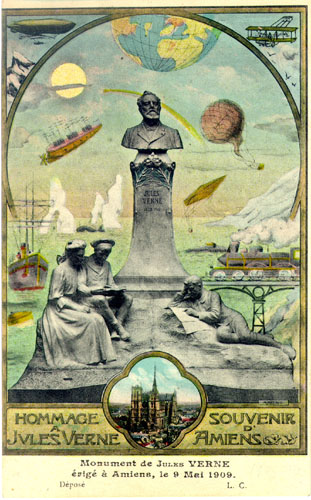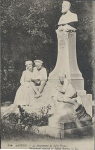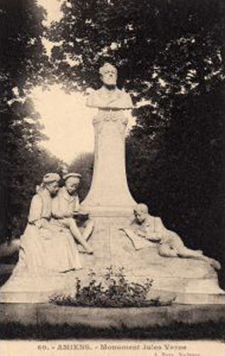 The following image is a photograph of the Monument to Jules Verne.