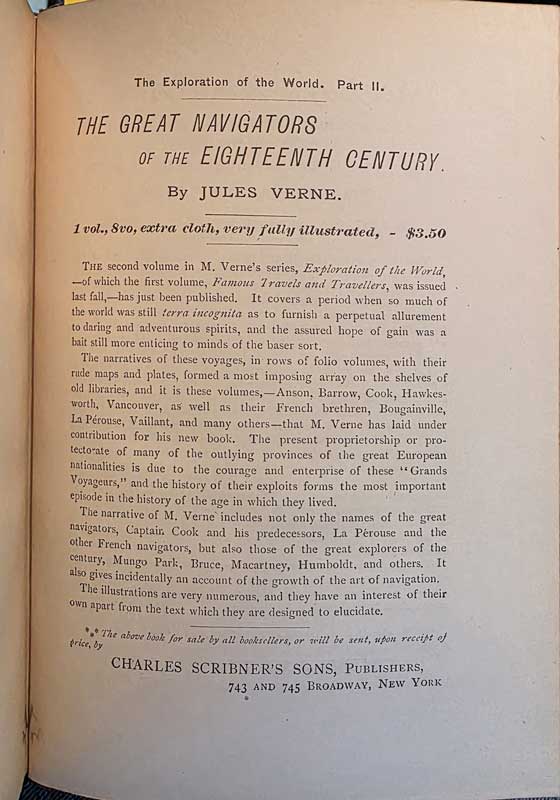 The Explorations of the World: The Great Navigators of the XVIIIth Century [93] 1880 first UK edition, Sampson Low [94] 1880 first US edition Blue, Scribner's [95] 1880 first US edition Brown, Scribner's [?96?] 1881 US edition, Scribner's