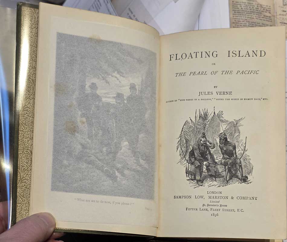 The Floating Island [109] No date (1900) first US edition, Allison [110] 1896 UK first English edition, Deluxe edition, Sampson low
