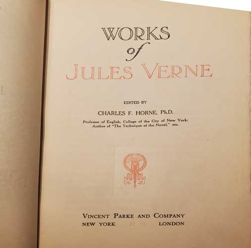 The 15 volume set of the Works of Jules Verne was published by Vincent Parke and Company in EIGHT 'Limited editions' ....... ( 2 other companies also published the Works of Jules Verne, and they are listed below as well )