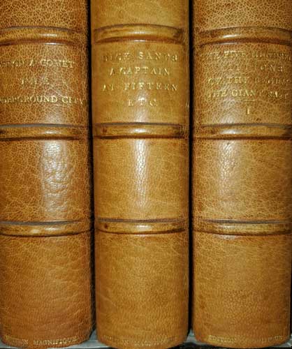 Ed: I debate whether the spines are faded to the tan colour from sun exposure, or died that way. It would seem to make sense that they have faded, but it is a nice consistent colour between all the volumes!