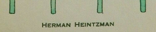 His initials are done in a gold circle in gold and blue.a