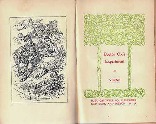 "In 1963, the Macmillan Company published an extraordinary edition of Dr. Ox's Experiment, which includes an interesting introduction and epilogue, and an early attempt at preparing a Jules Verne bibliography with numerous original illustrations reproduced from various stories by Verne. The book is printed with a ninety-degree rotated orientation. However, only the story of Dr. Ox, from the Towle translation, is contained in this book."