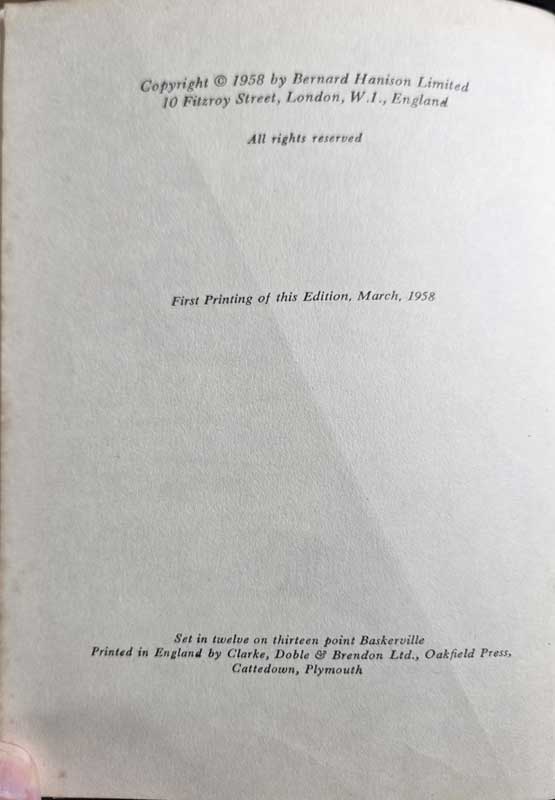 Dustjacket unclipped with Second Impression and 12s 6d net covered by a 15/ net sticker