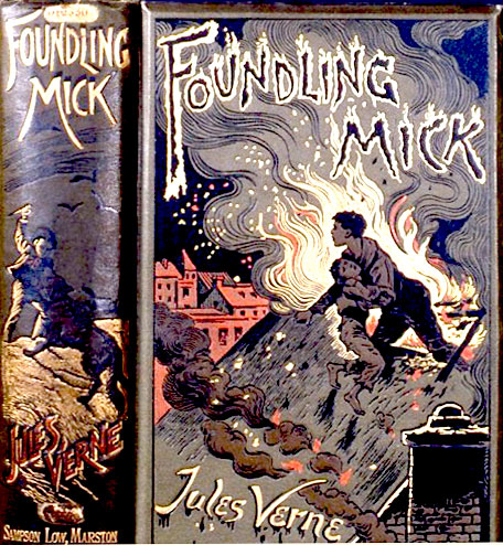 "In February 1985: Sampson Low published the first British edition as Foundling Mick, in post 8vo., priced at 6s. The spectacular pictorial binding shows the rescue of Mick as flames burst upward from the roof of the school."
